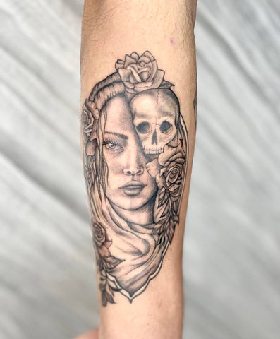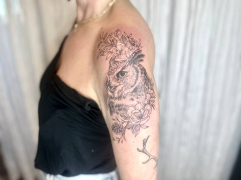 Bekah has been captivated by art and tattoos since childhood, developing a deep, lifelong passion for creative expression. A self-taught artist, her work draws inspiration from the darker elements of the world and the beauty of nature. Specializing in illustrated black and grey tattoos, Bekah’s artistic vision transcends mediums—whether it's painting, drawing, or tattooing, she constantly explores and refines her craft. With a relentless drive to push her creativity, she seeks to inspire others through her art, sparking imagination and connection with each piece she creates.
